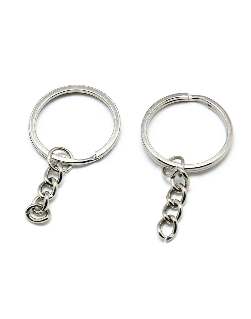 Accesorio para llavero. Aleación de cobre. Color platino. 28 mm diámetro. Con cadena. 20 uds.