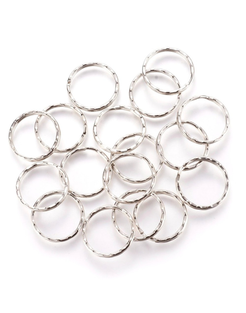 Accesorio para llavero. Aleación de cobre. Color plateado. 25 mm diámetro. 1,5 mm grosor. 10 uds.