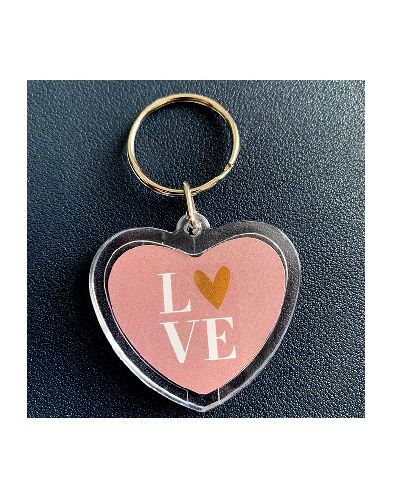 Accesorio para llavero. Corazón. Acrílico+aleación de cobre dorado. 40x45 milímetros. 5 unidades.