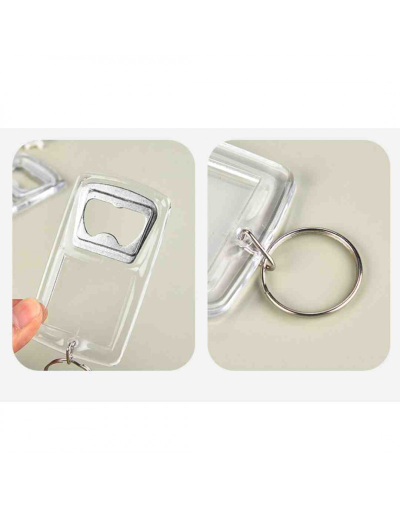 Accesorio para llavero. Abre botellas. Acrílico+aleación de cobre. 84x46 milímetros. 5 uds.
