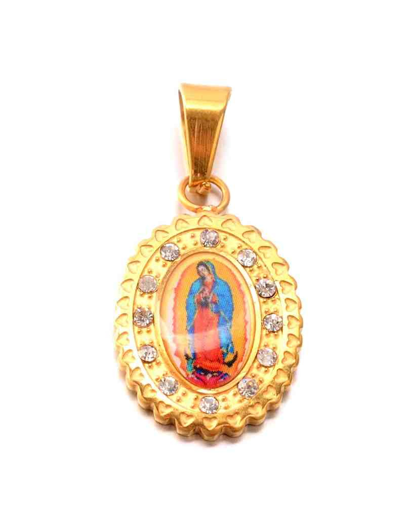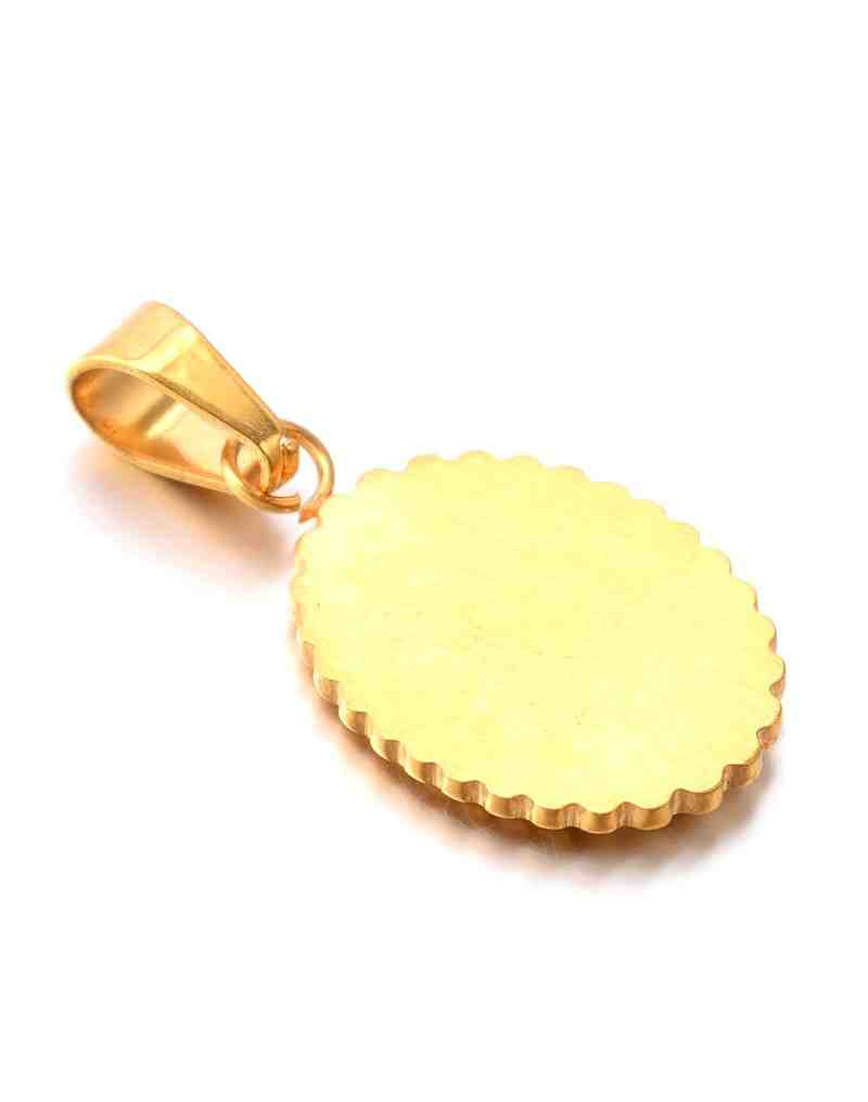 Religión: Virgen María. Acero inoxidable. Color dorado. 21x13x2 mm. 4x6 mm cierre. 1 ud.