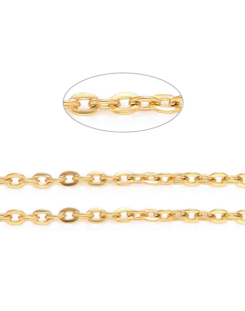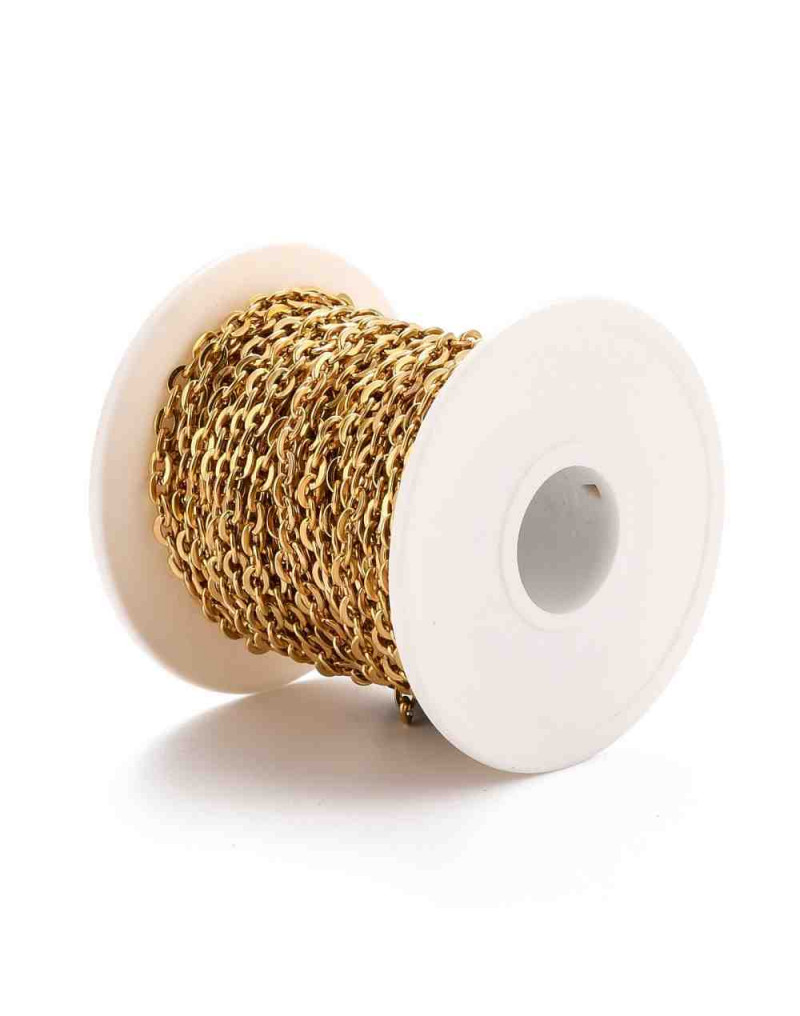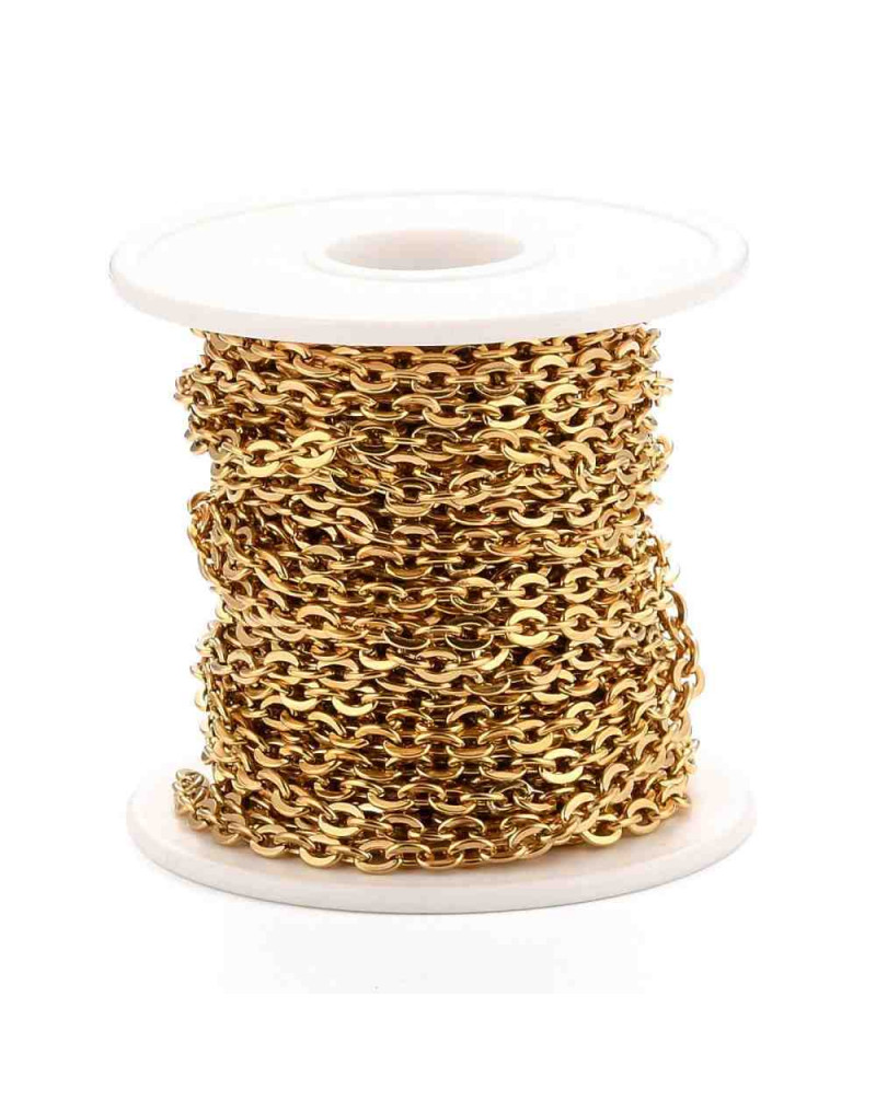 Acero inoxidable. Color dorado. Link: 4x5x0,5 milímetros. 1 metro.