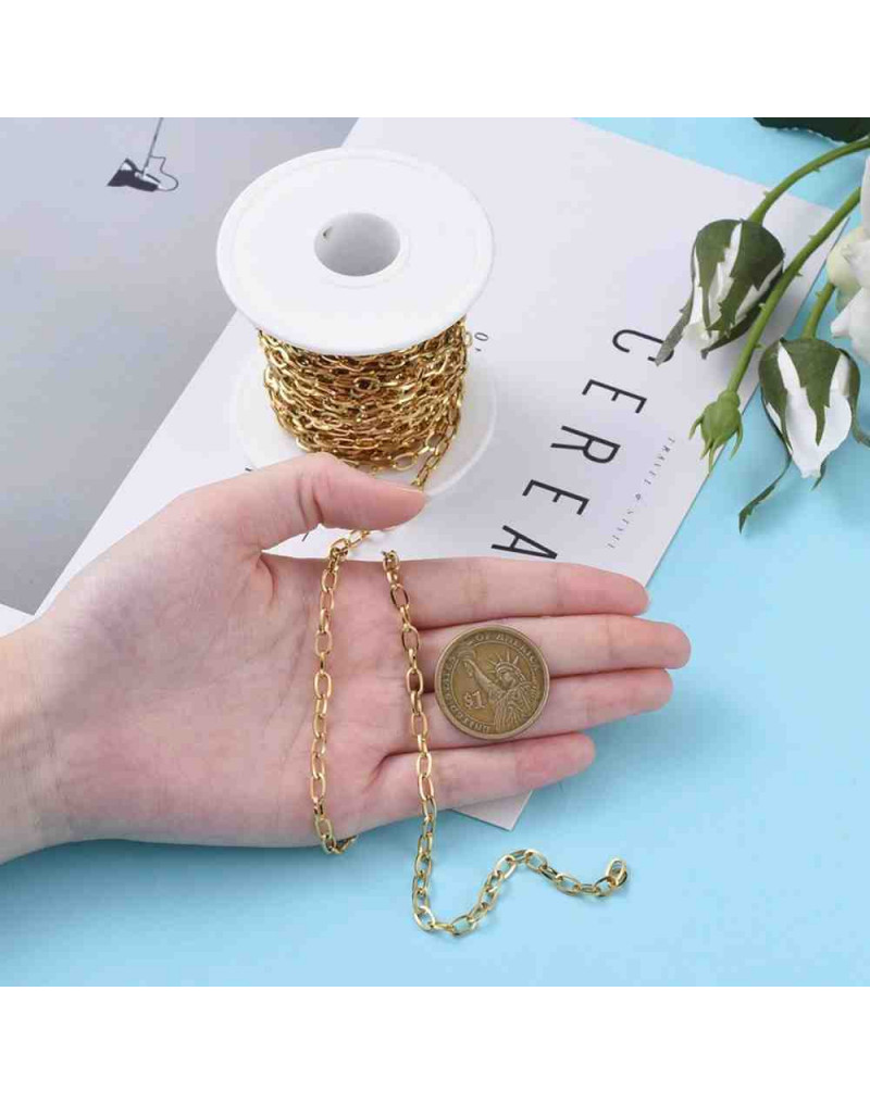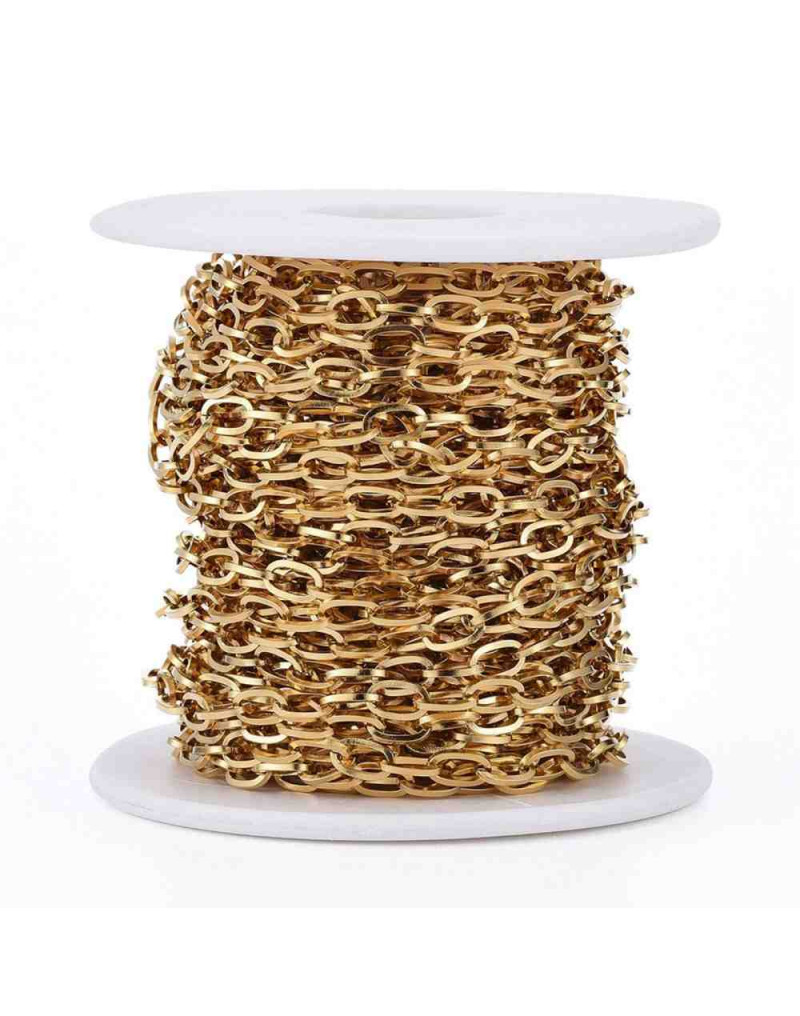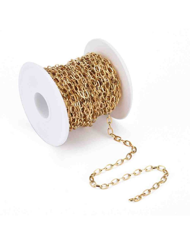 Acero inoxidable. Color dorado. Link ovalado. 7x4x0.8 mm. 1 metro.