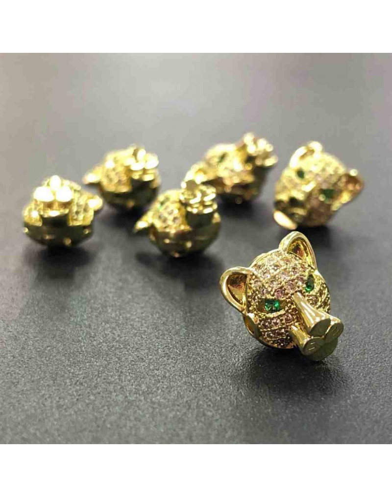 Leopardo. Aleación+Zirconia. Baño 18k gold. 19x9 milímetros. 2 mm perforación. 1 unidad.