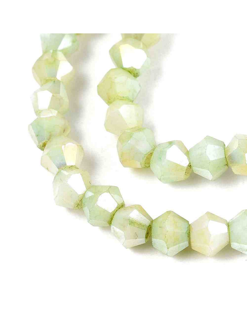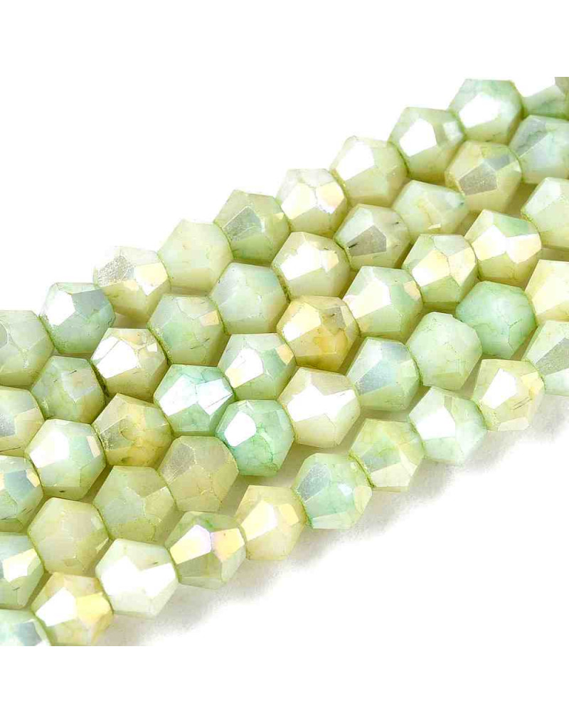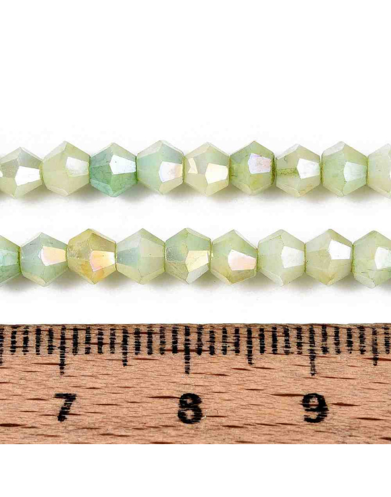 Bi-cono. Plated Pale Green. 4.2~4.9x3.9 mm. 0.8 mm perforación. 80 uds hilo aprox. 1 hilo.
