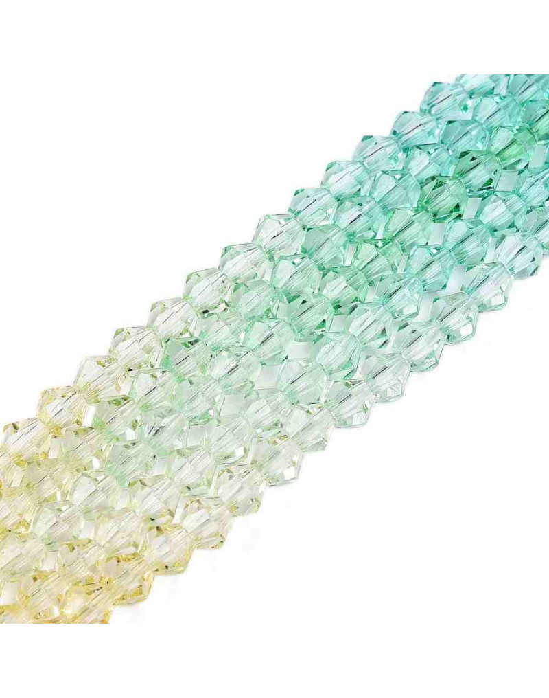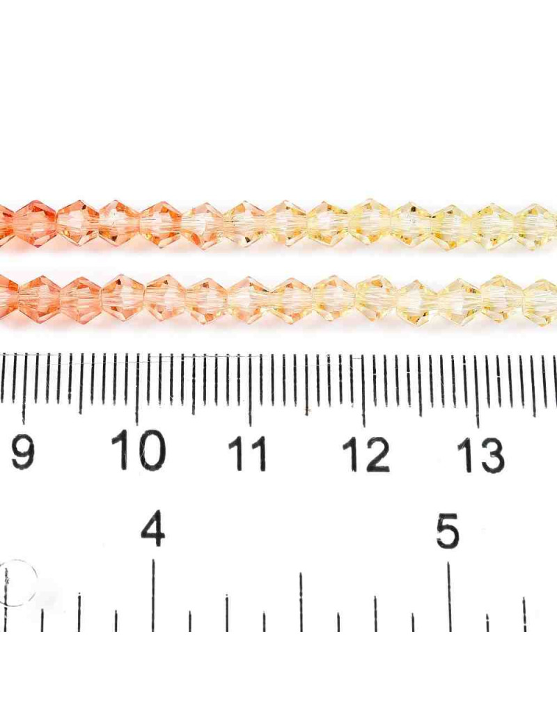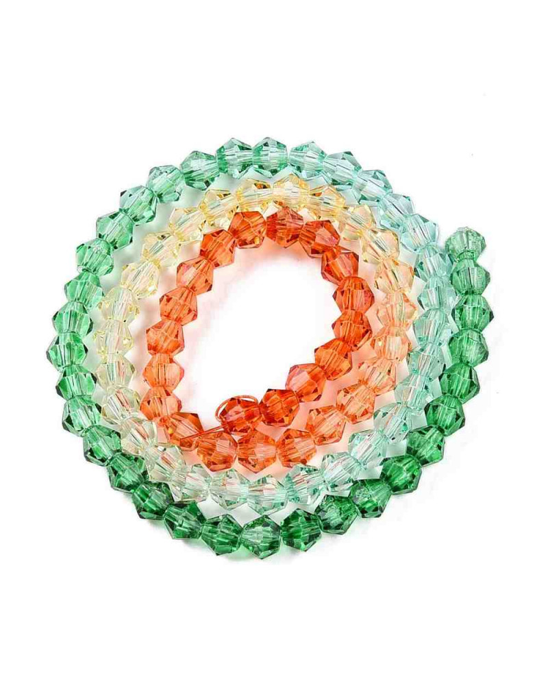 Bi-cono. 4.5x4 mm. Color degradado: verde a naranja. 0.8 mm perforación. 80 uds hilo aprox.