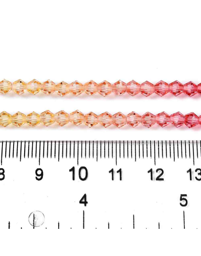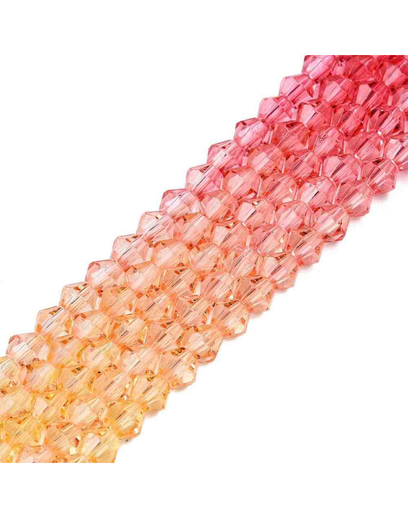 Bi-cono. 4.5x4 mm. Color degradado: naranja a rojo. 0.8 mm perforación. 80 uds hilo aprox.