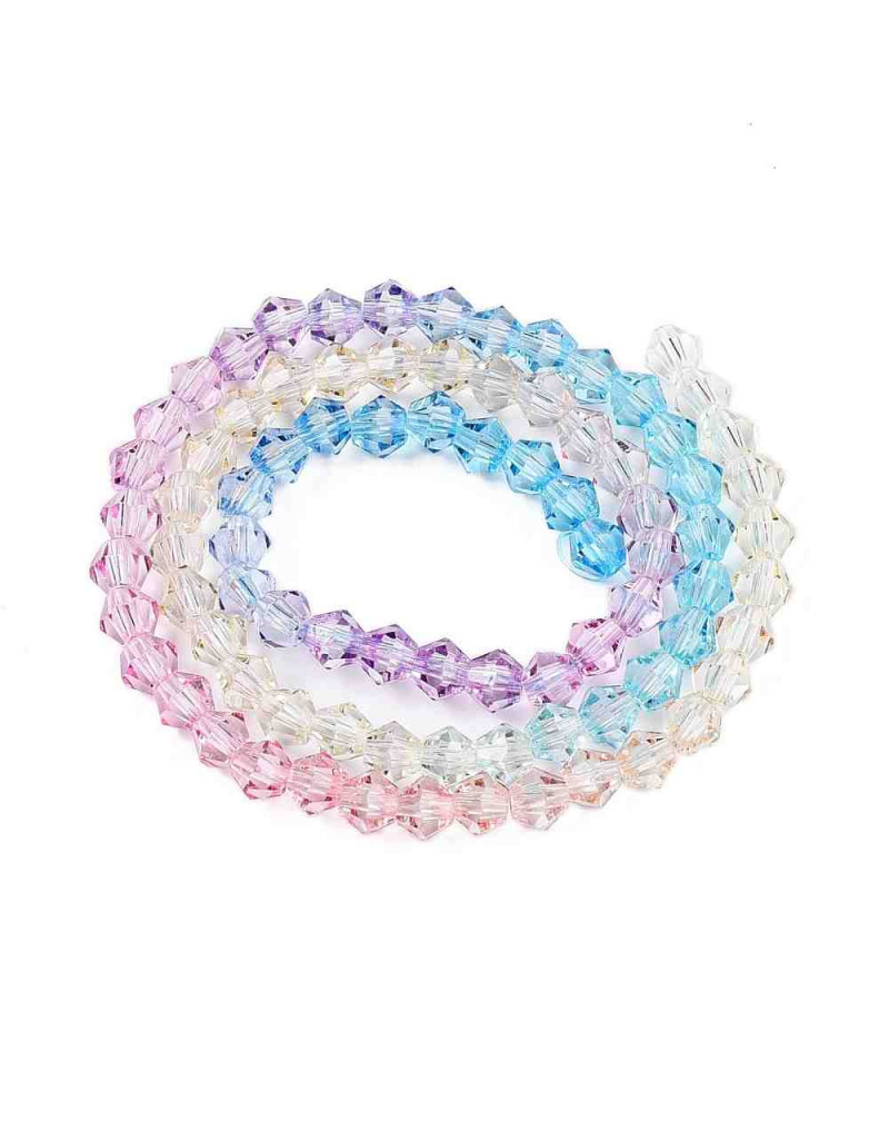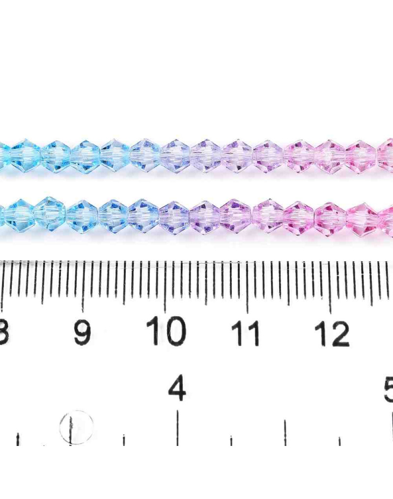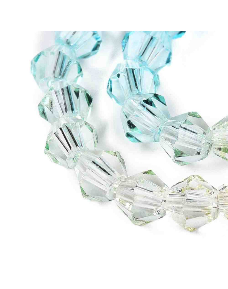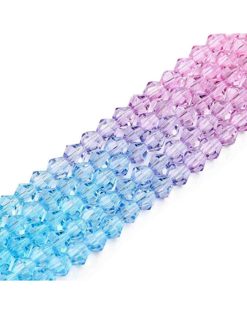Bi-cono. 4.5x4 mm. Color degradado: amarillo a celeste. 0.8 mm perforación. 80 uds hilo aprox.