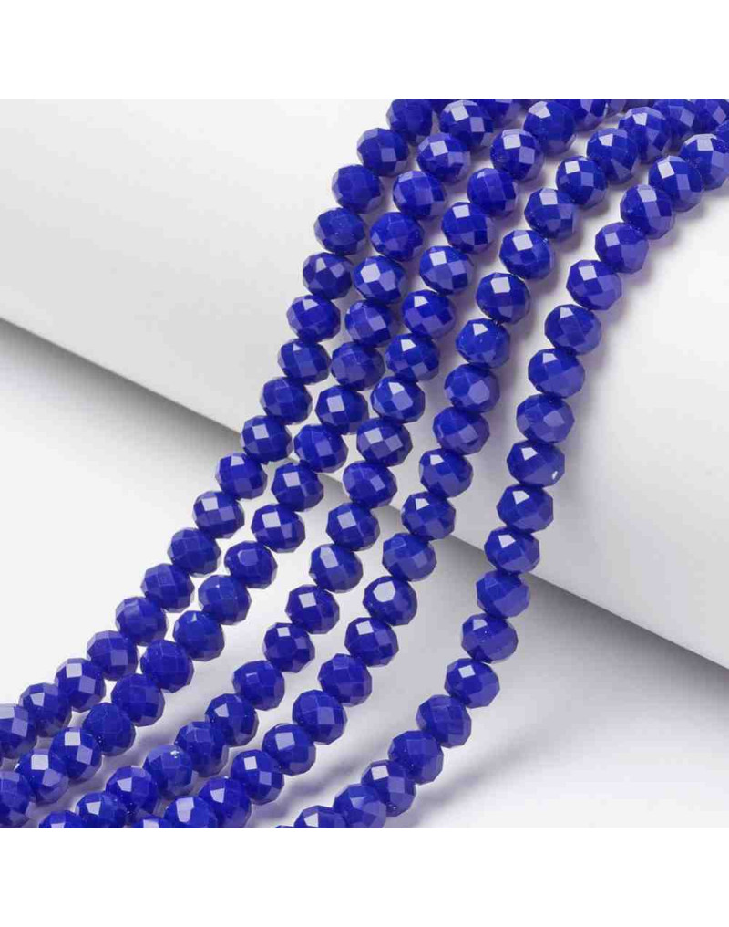 Rondelle. Faceteado. 6x5 mm. Azul. 1 mm perforación. 80 uds hilo aprox. 1 hilo.