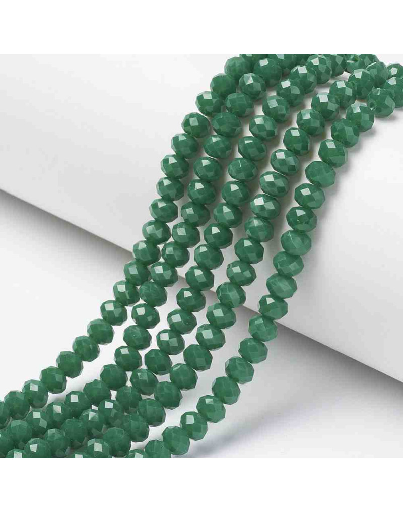 Rondelle. Faceteado. 6x5 mm. Verde. 1 mm perforación. 80 uds hilo aprox. 1 hilo.