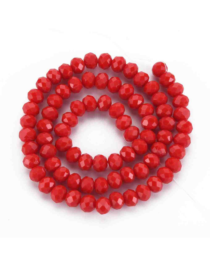 Rondelle. Faceteado. 6x5 mm. Rojo. 1 mm perforación. 80 uds hilo aprox. 1 hilo.