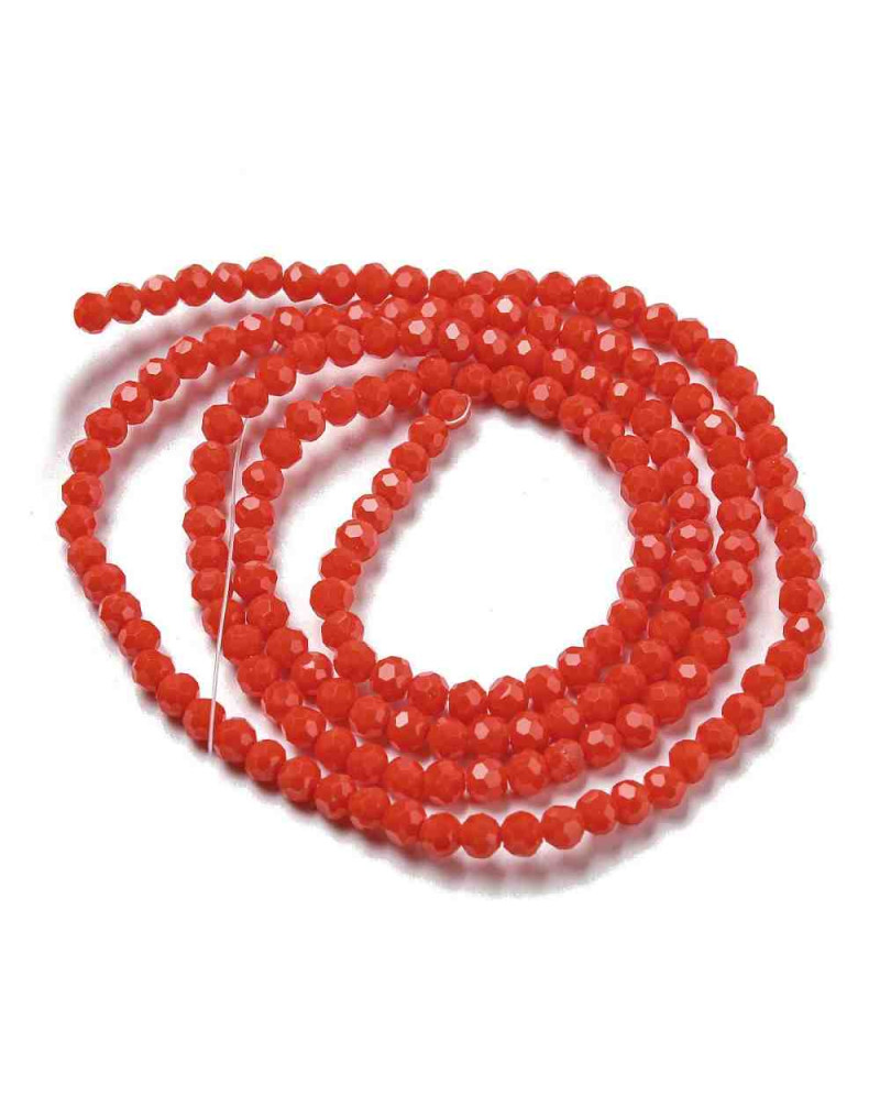 Esfera. Faceteada. 32 caras. Red. 3~3.5 mm diámetro. 0.6 mm perforación. 160 uds hilo aprox.