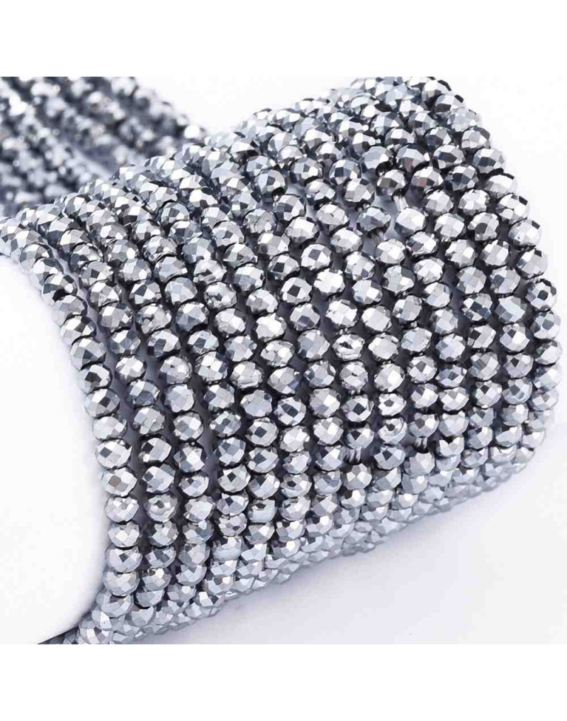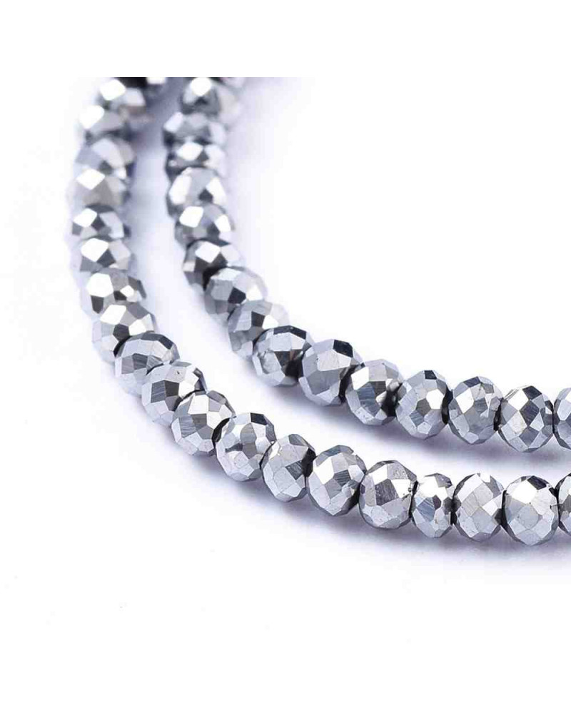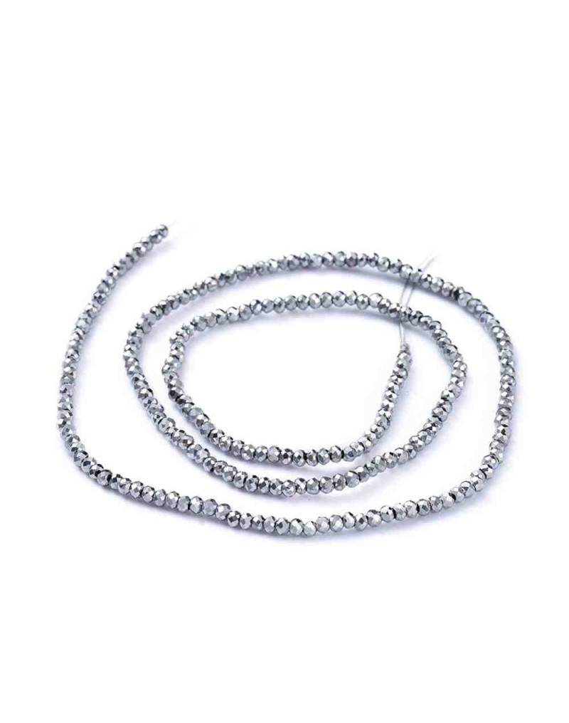 Rondelle faceteado. 2x1,5 milímetros. PLATINUM PLATED. 0,6 mm perforación. 220 uds hilo aprox.