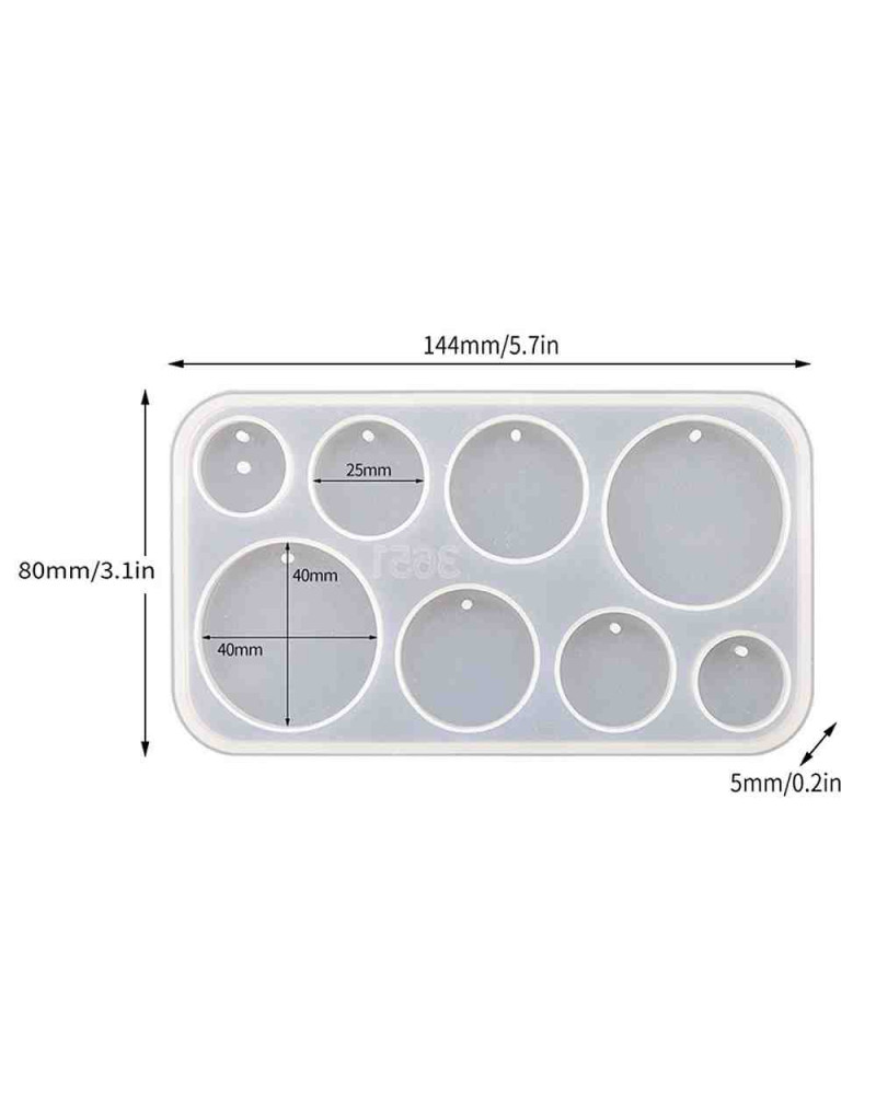 Molde para resina Dijes. Monedas 4 tamaños diferentes. 80x144x5 mm. 2 mm perforación. 1 ud.
