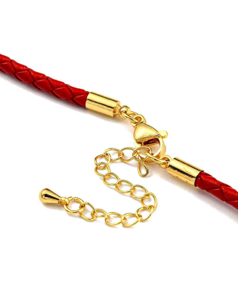 Cordón pulsera. Cuero ROJO. Baño 18KGold. 3~4 mm GROSOR. 152 mm largo. 45 mm extensión. 1 ud.