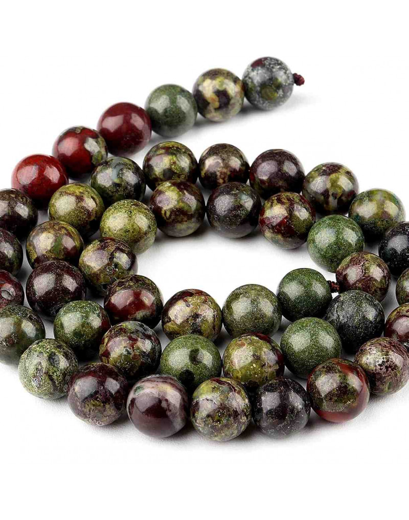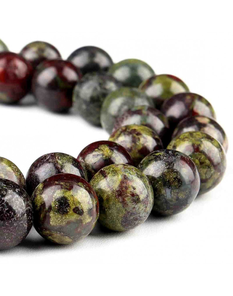 Blood Stone. Dragón. 06 mm diámetro. 1 mm perforación. 60 uds hilo aprox.
