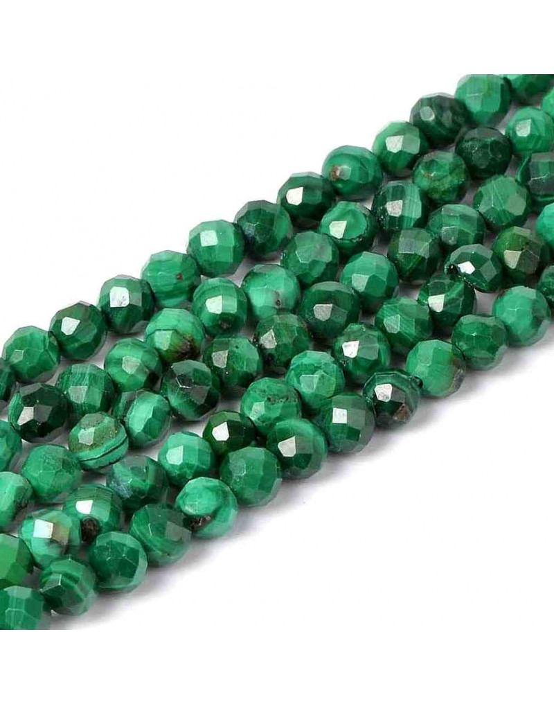 Malaquita sintética. Faceteado. 04 mm diámetro. 0,80 mm perforación. 90 uds hilo aprox.
