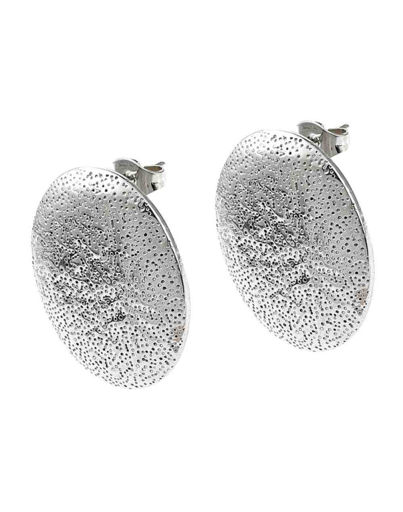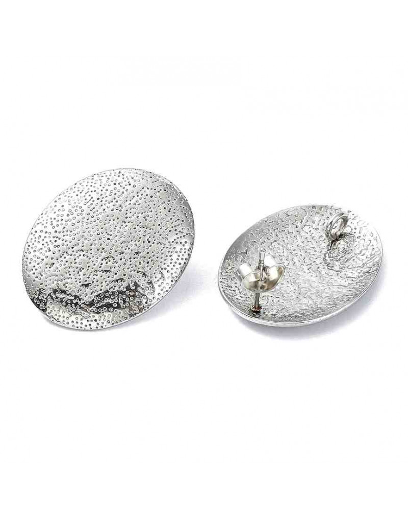 Pin aretes con cierre. Acero inoxidable. Color plateado. Ovalo 25x20 mm. Pin 10.5x0.5 mm. 2 uds.
