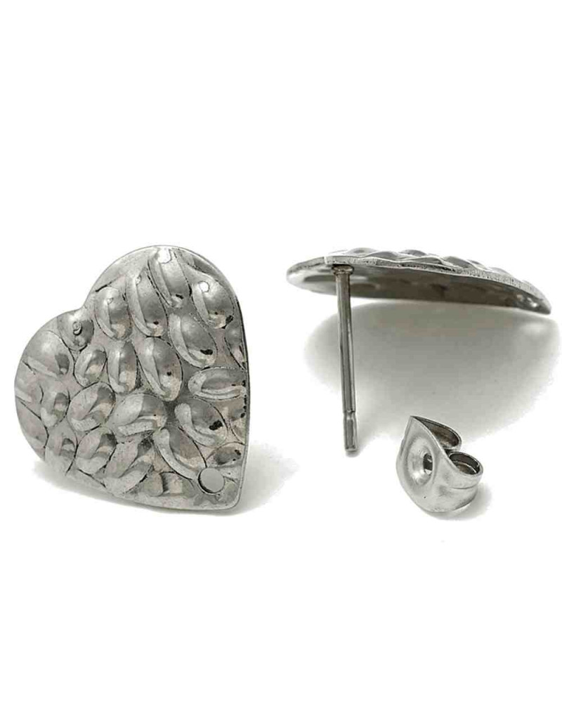 Pin para aretes. Corazón. Acero inoxidable. Color platedo. 15,5x16 mm. Cierre 6x4x3 mm. 2 unidades.