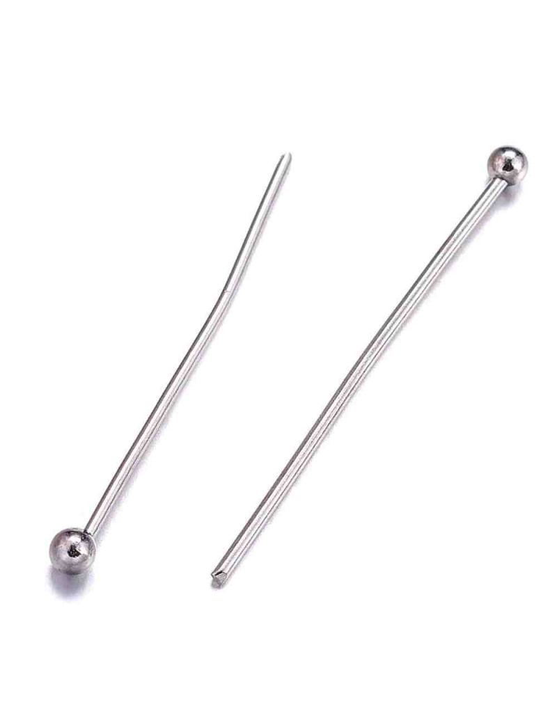 Pin con esfera. Acero inoxidable. Color plateado. 25x0,6 milímetros. Esfera: 2 mm. 10 uds.