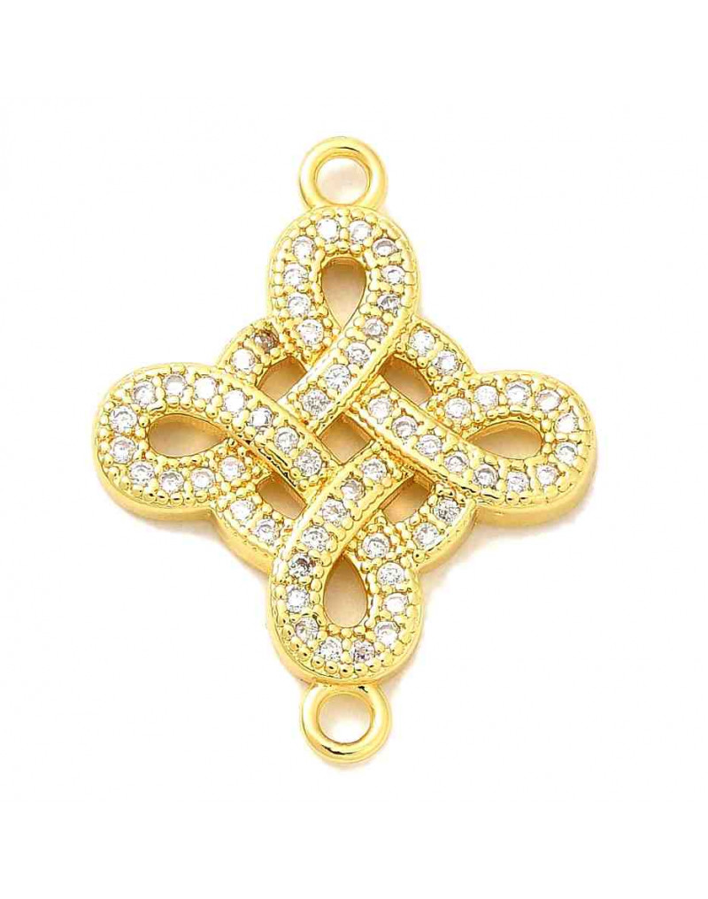 Nudo de Bruja. Aleación+Zirconia. Baño 18KGold. 23.5x18x2.5 mm. 1,6 mm perforación. 1 ud.