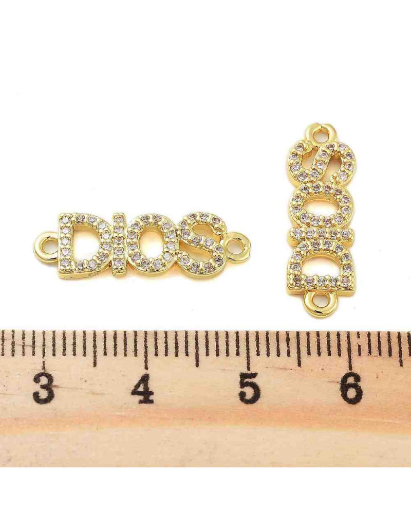 Religión: Dios. Aleación+Zirconia. Baño 18KGold. 7x21x2 mm. 1,4 mm perforación. 1 ud.