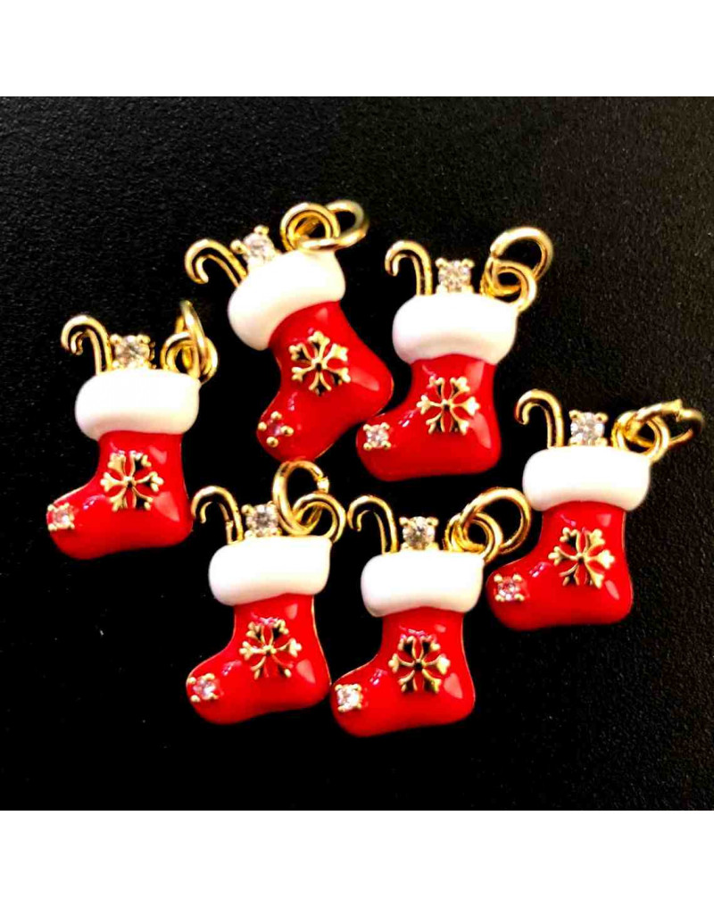 Navidad: Calcetín (1). Aleación de cobre. Baño 18k Gold. 16x12 milímetros. 5 mm arandela. 1 ud.