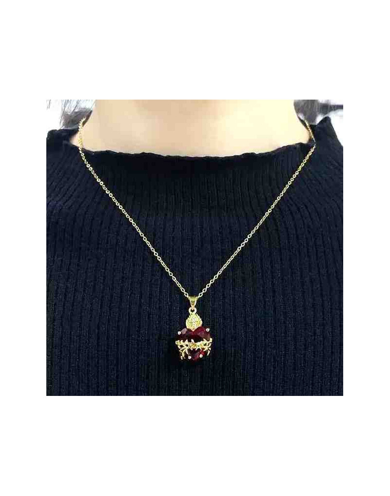 Religión: Corazón de Jesús. Aleación. Baño 18k Gold. Zirconia. 25x15 mm. 3x6 mm cierre. 1 ud.