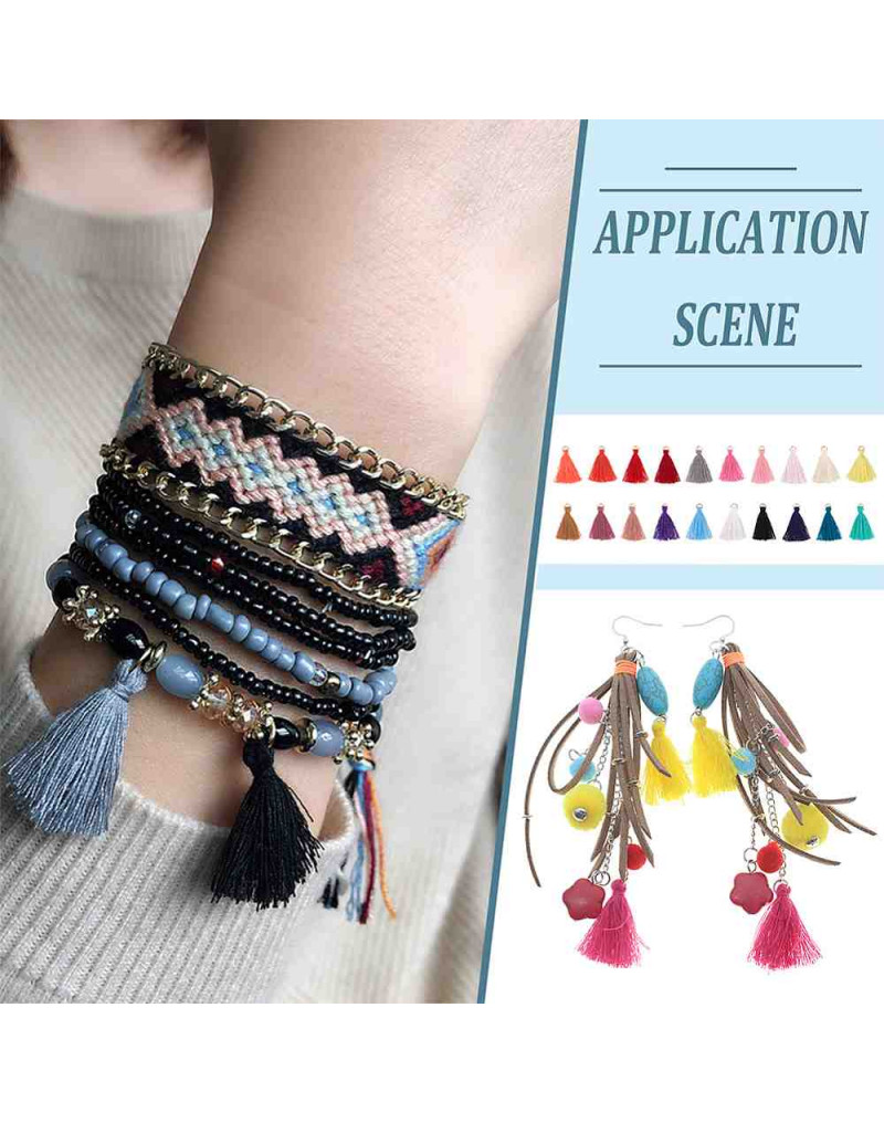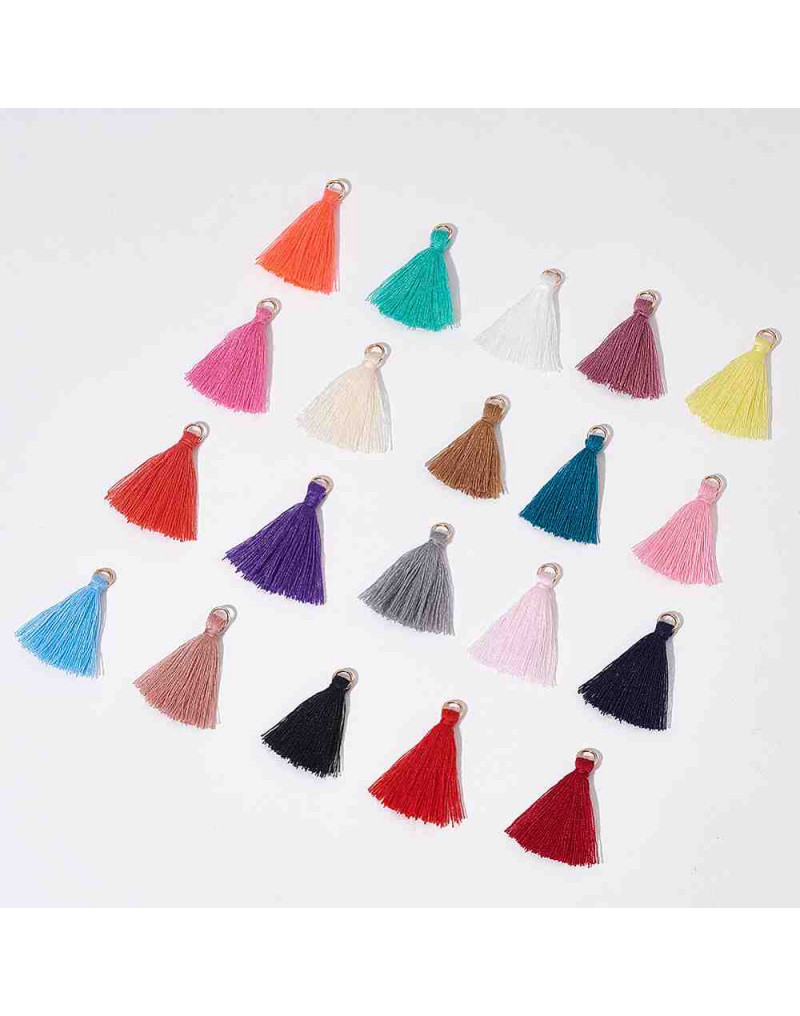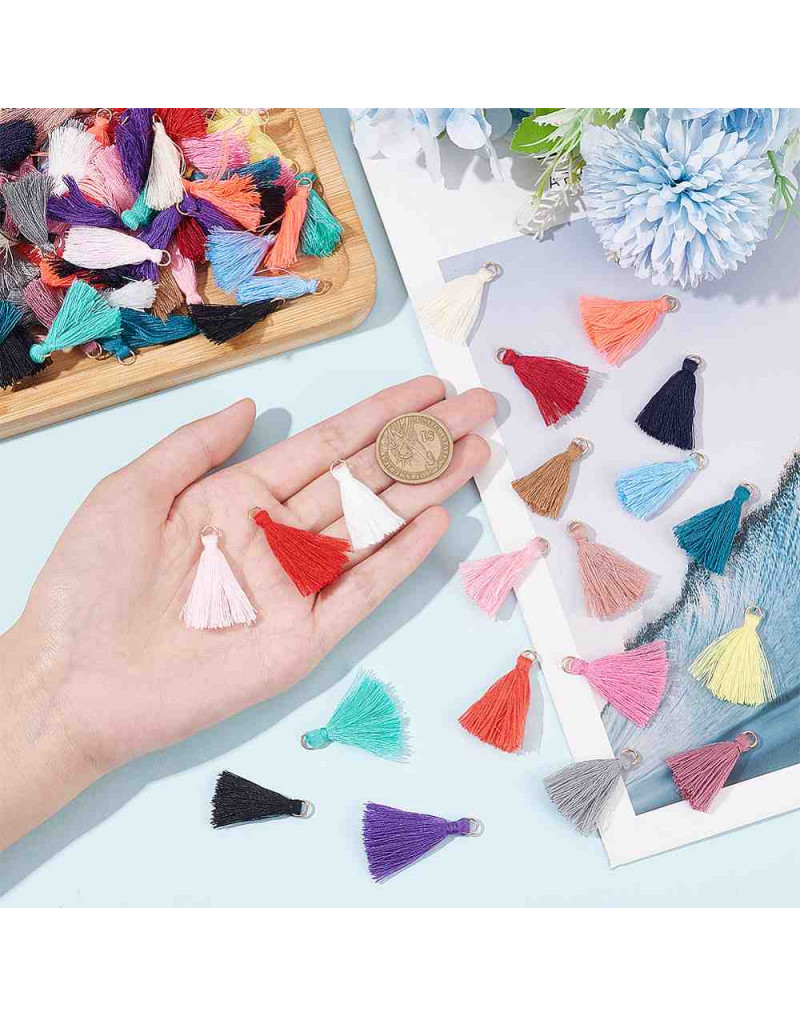 Tassel. Poliester+Aleación cobre dorado. Colores variados. 33x6 milímetros. 2.4 mm agujero. 4 uds.